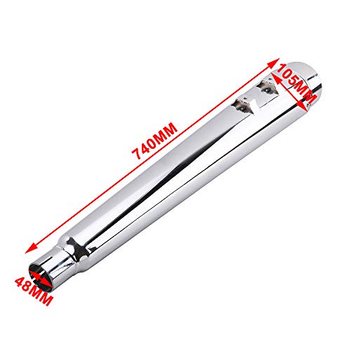 29 inch lengte; 1-7 / 8 inch inlaat; 4,5 inch uitlaat. Volledige lengte geklonken 1-5 / 8 ” geluidswand van 1-3 / 4 “tot 3” (Deep Tone Sound)