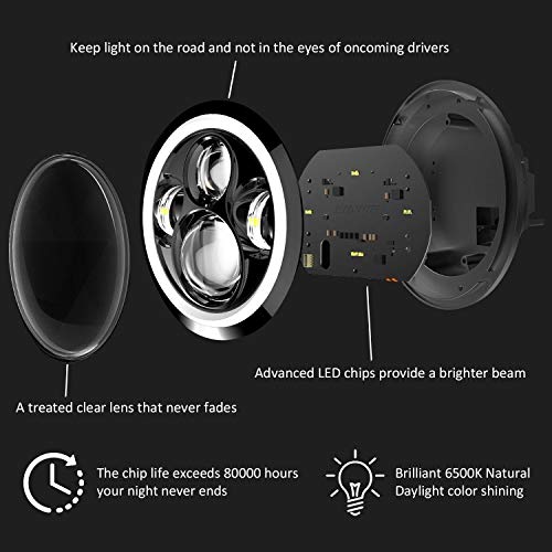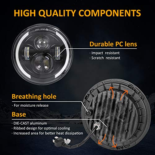 ➤Hoge prestaties DOT-geteste ronde led-koplampen met geavanceerde Cree-ledchips zorgen voor 4-voudig geconcentreerd licht. De ingebouwde EMV-flikkeronderdrukking zorgt voor een helderdere en zachtere lichtstraal en zorgt met onze led-koplamp voor veilig rijden.