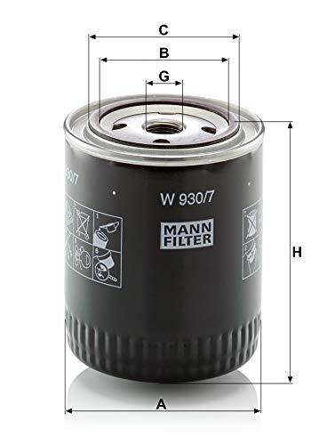 MANN-FILTER Oliefilter W 930/7 / Afmetingen: H = 114 ; A = 93 ; B = 62 ; C = 71 / Premium filter in originele kwaliteit