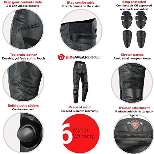 Specification: Motorbroek voor heren zwart rundleer met sliders – Verkrijgbaar In Alle Maten