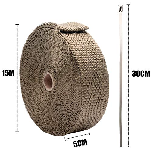 Specification: Bangminda Hitte ban, hittewerend, van basaltvezel, 15 m x 5 cm, titanium kleur, uitlaatband met 10 roestvrijstalen…